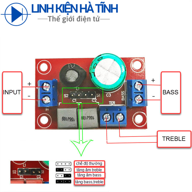 Mạch phân tần 2 đường bass treb kiểu JBL cho loa xe hơi, loa gia đình 4 chế độ